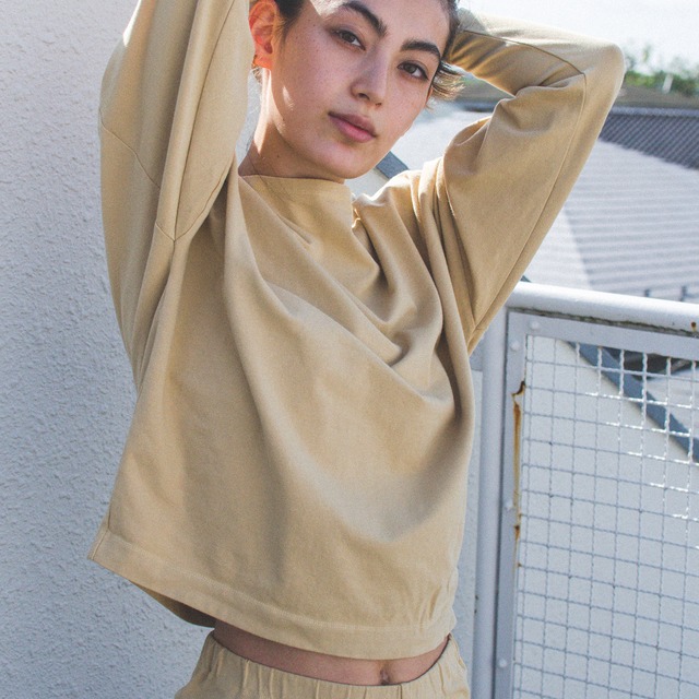 Long sleeve, and shorts set up (Limited) Clay / M Organic cotton 96%, Spandex 4% Elastic band around the waist Made in Japan for dream makers ロンテーとショーツ(期間限定) クレー / M オーガニックコットン96% ポリウレタン4% ウエストゴム入り Made in Japan for dream makers Light sleepers are great for sleeping and lounging at home. The silhouette is loose and relaxed, but it's fitted where you want it. So pull up your sleeves when you're ready to get to work! トップスはゆったりとしたシルエットと、程よいスリーブ先のストレッチ。 ショーツはゴム入りのハイウェスト。たけは短いけど、お尻はちゃんと隠れます。 セットアップとしておうち時間に着てみてください!